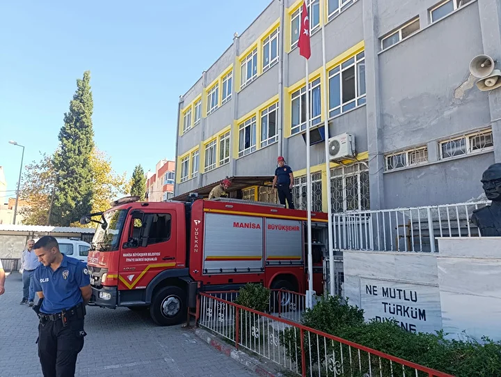 Vatandaşlar, durumu 112 Acil Çağrı Merkezi’ne bildirdi. İhbar üzerine okula Manisa Büyükşehir Belediyesi Turgutlu İtfaiye Amirliği ve polis ekipleri sevk edildi.